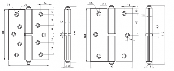 Oda kapılarında, gömme tarzında ya da gömmeden kullanılabilen, ayrılabilen gövdeye sahip, aşınmayan çelik burçlu, sağ ve sol kapı yönüne göre çeşidi olan, standart ve özel renklerde kaplanabilen, menteşe türüdür.