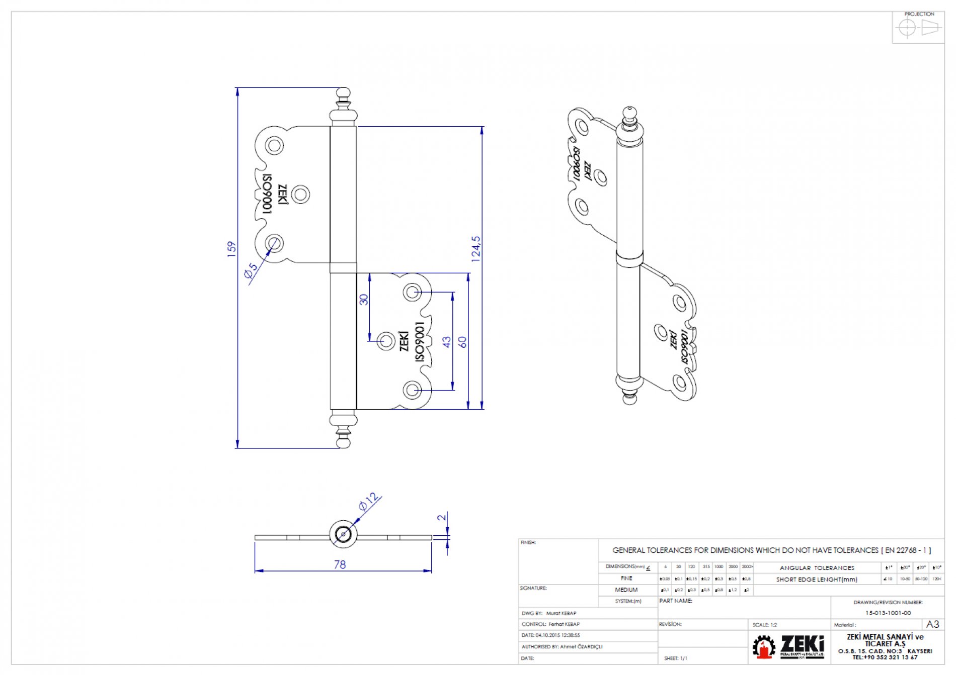 Osmanlı Desenli Yönsüz Menteşe